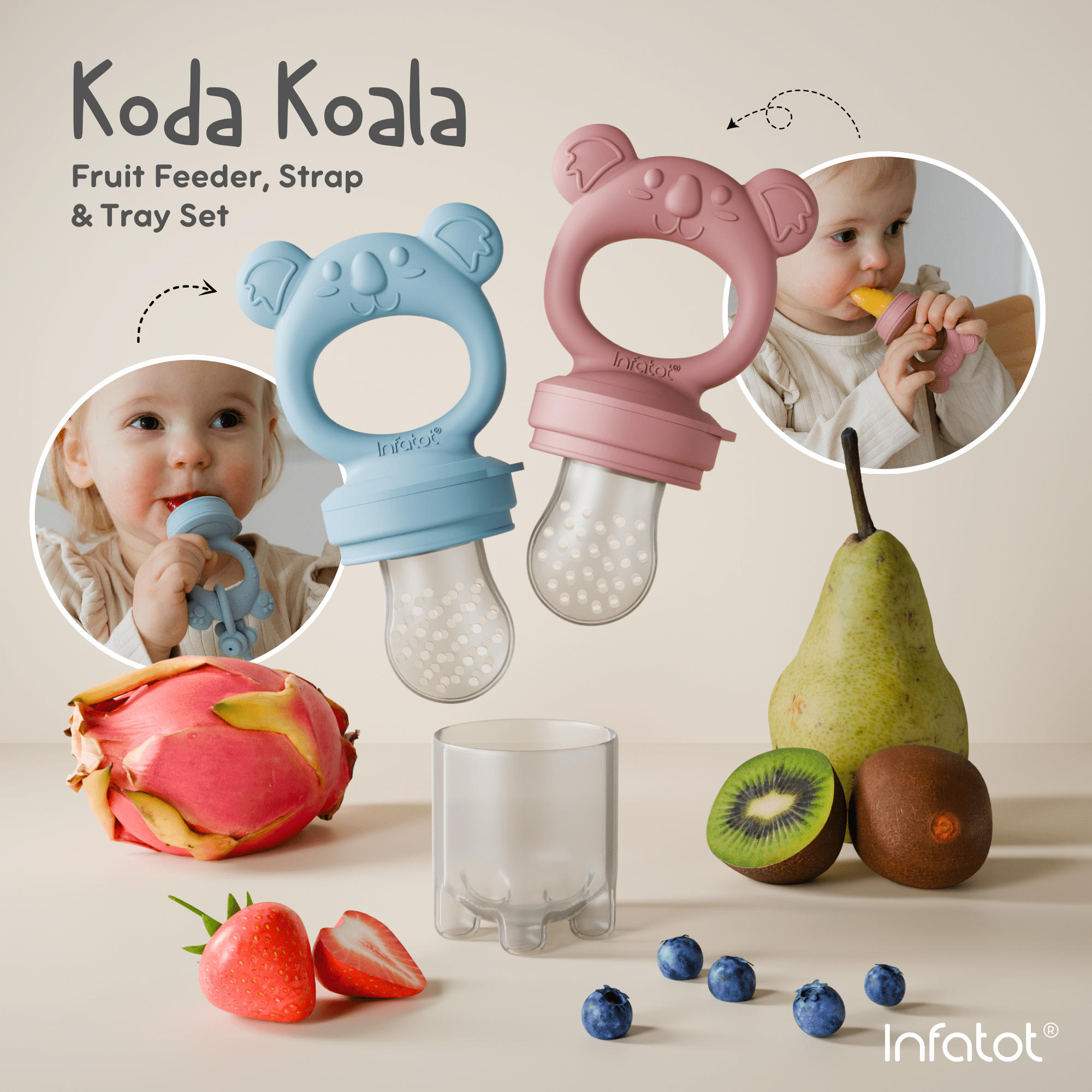 This frozen fruit feeder by Infatot is well made and good quality. This set is easy to use and comes with clear instructions. This fruit feeder feel durable, hardwearing and sturdy. It works well for teething children and i like the cute koala design too. Overall it is good value and id reccomend it.